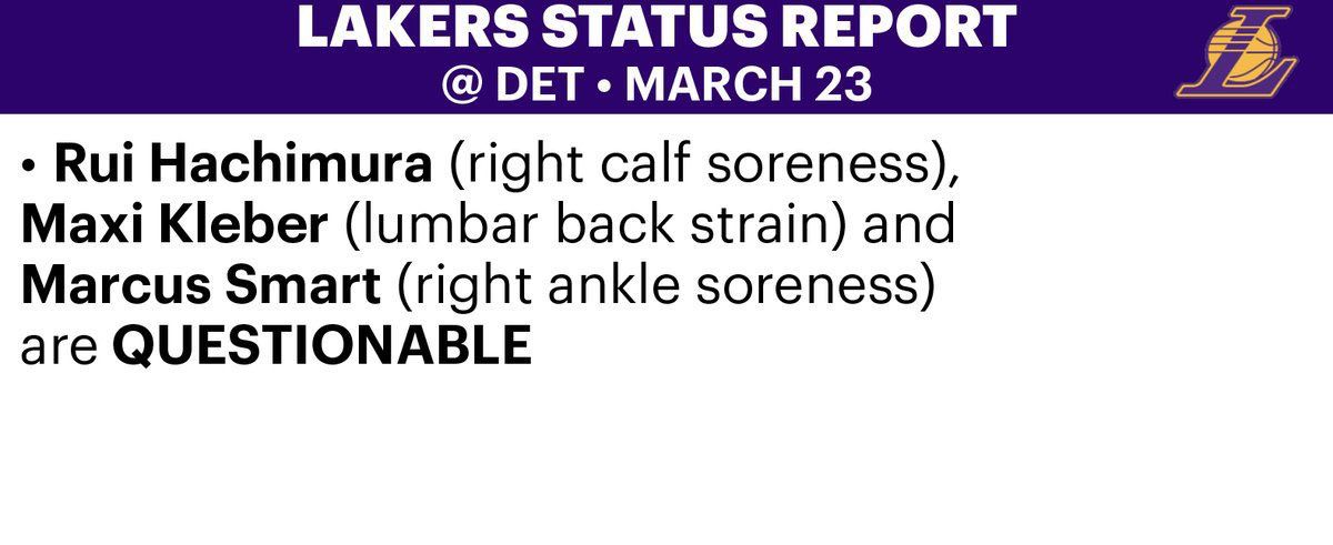 Rui Hachimura (right calf soreness),