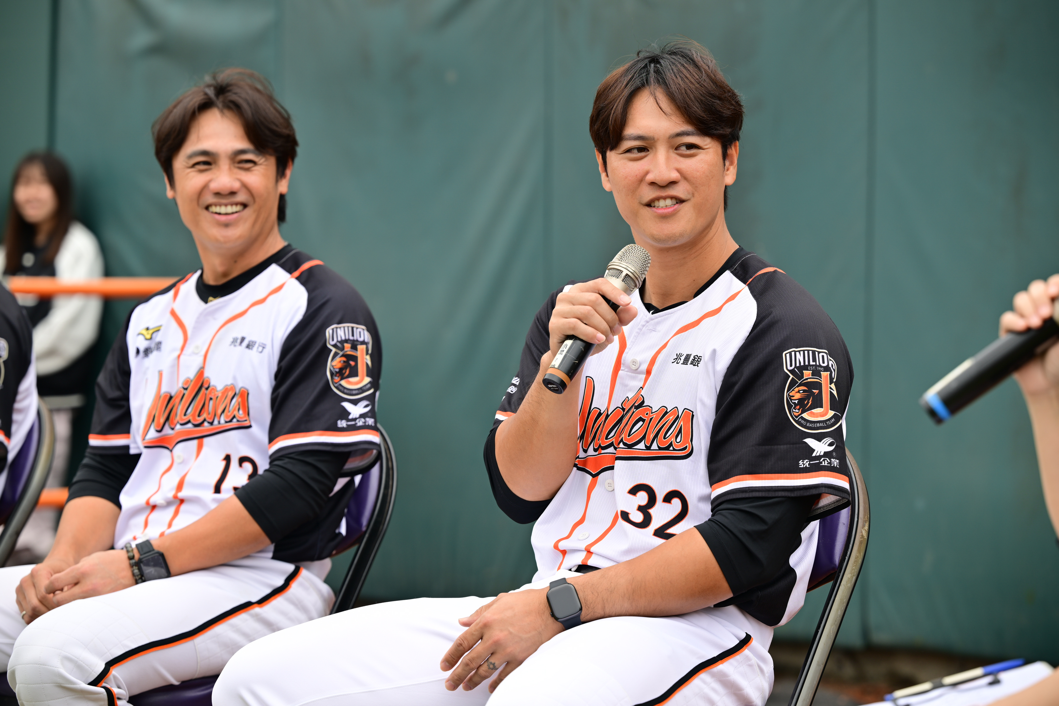統一獅隊陳鏞基(左)、蘇智傑(右)出席球迷活動「球星獅訊室」。圖/統一獅隊提供