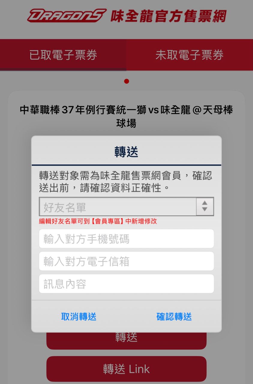 要有味全龍售票app及會員(會需要提供註冊時手機號碼及電子信箱)