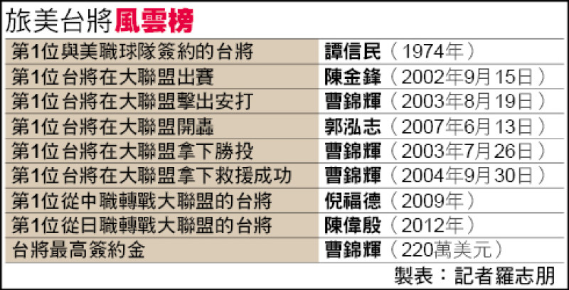 接著,曹錦輝、郭泓志、王建民、胡金龍先後赴美挑戰並上大聯盟,「台灣戰