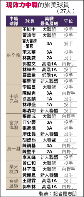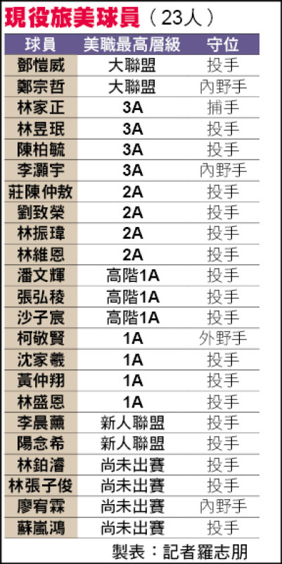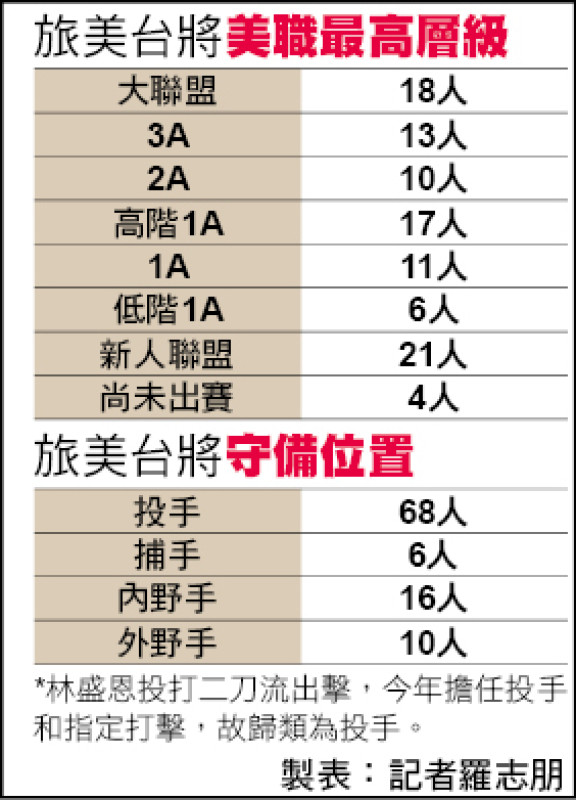 旅美台將美職最高層級&旅美台將守備位置