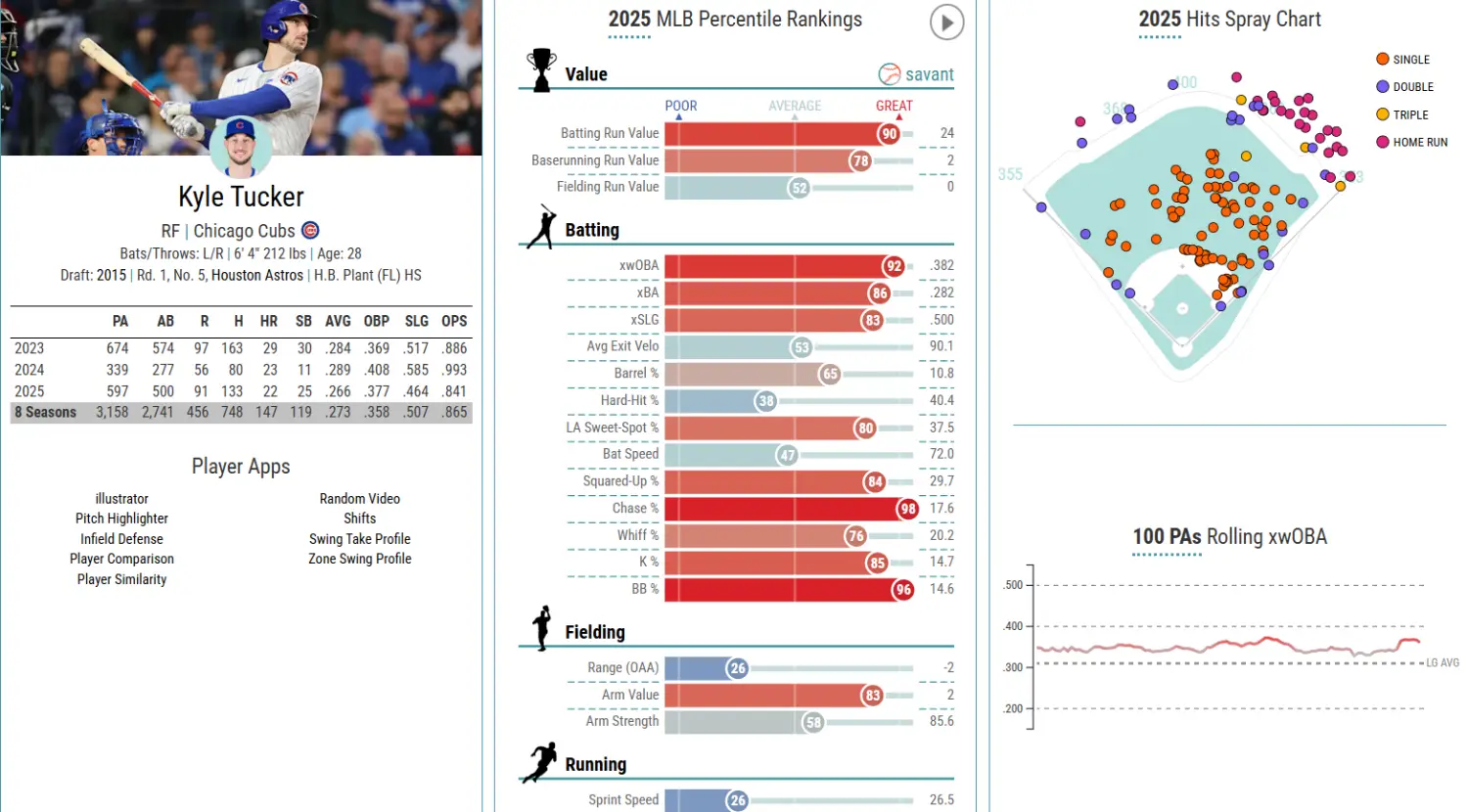 季前從太空人被交易到小熊隊的Kyle Tucker今年又繳出了不錯的成績