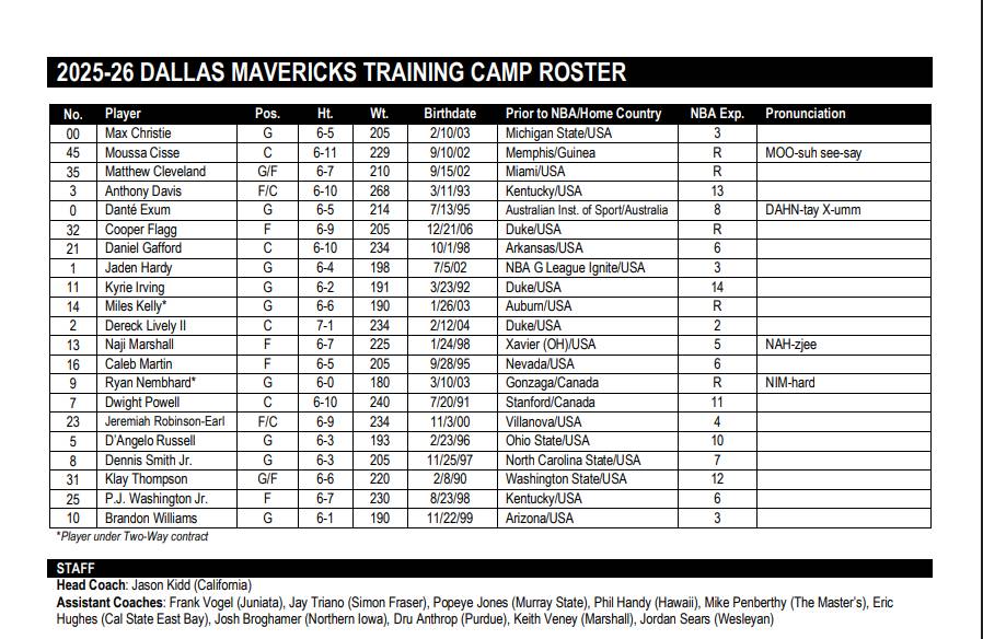 https://x.com/MavsPR/status/1971681328648356149?t=kxTMB4Y5TvV9ZJRw9zdB_Q&s=19