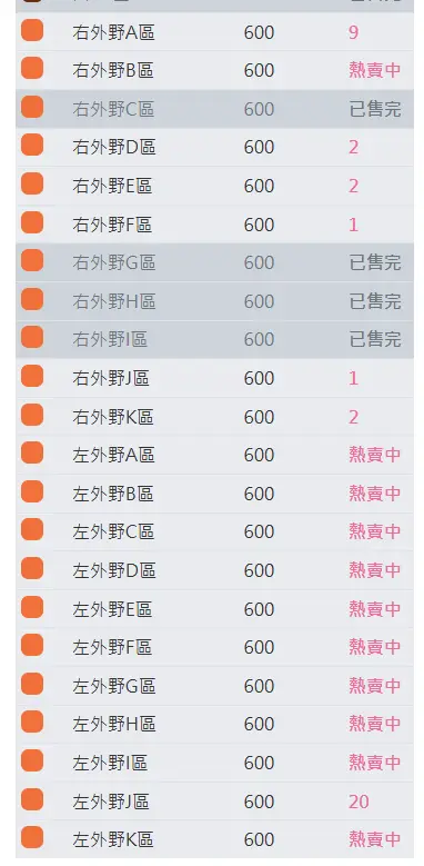 全面開賣挑戰賽目前售票情況
