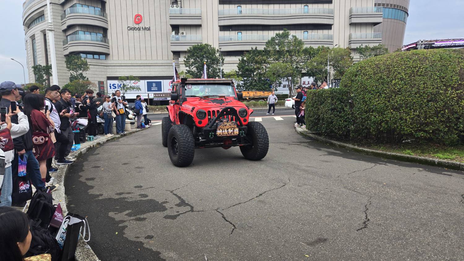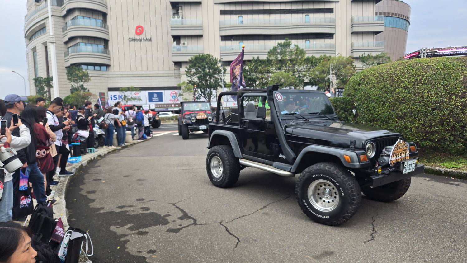 選手乘坐吉普車,