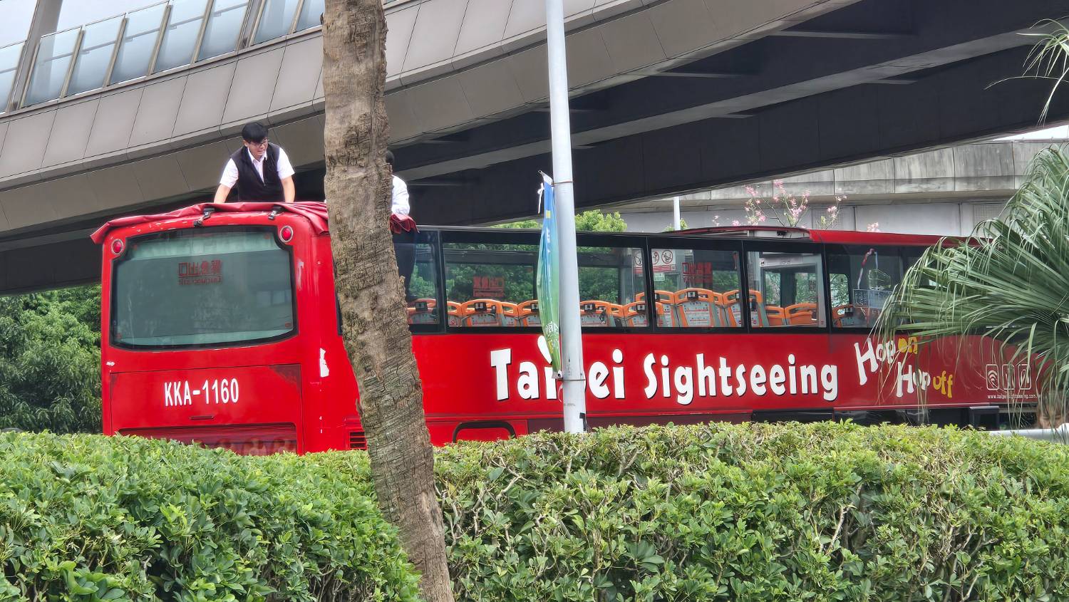 巴士頂棚開了。