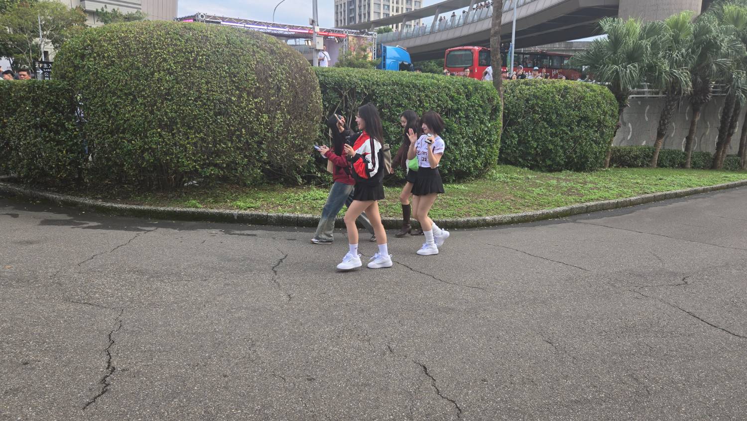 女孩、教練團等乘坐巴士。
