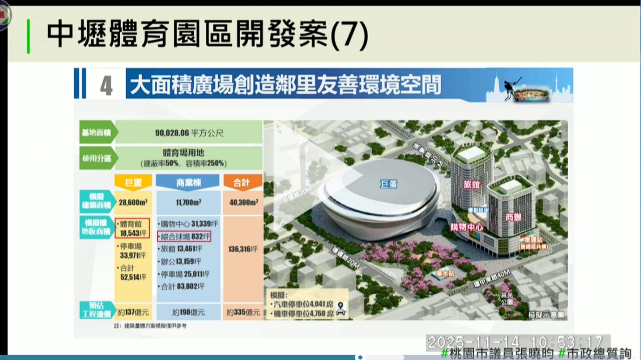 最近桃園市議員剛好問到桃園巨蛋的事情,就去找了一下市議會的質詢。