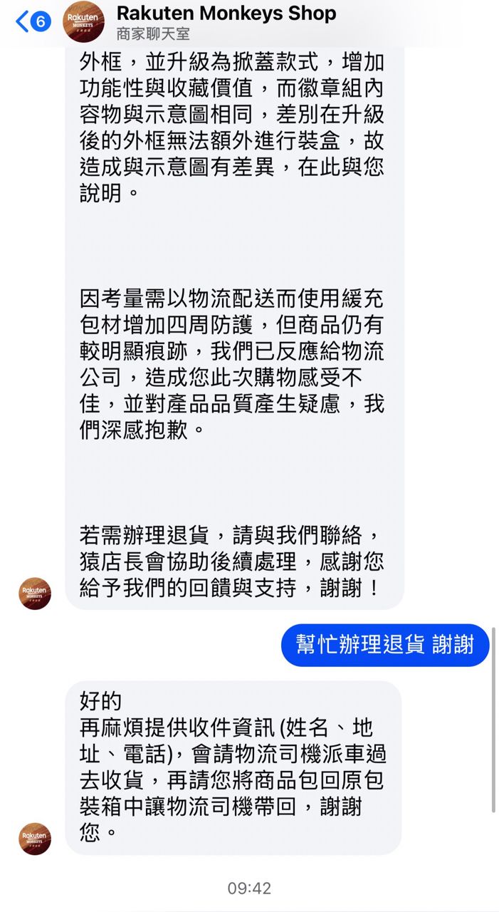 我一收到有反應給客服,得到跟您一樣的回覆。辦理退貨和會反應給相關單位!