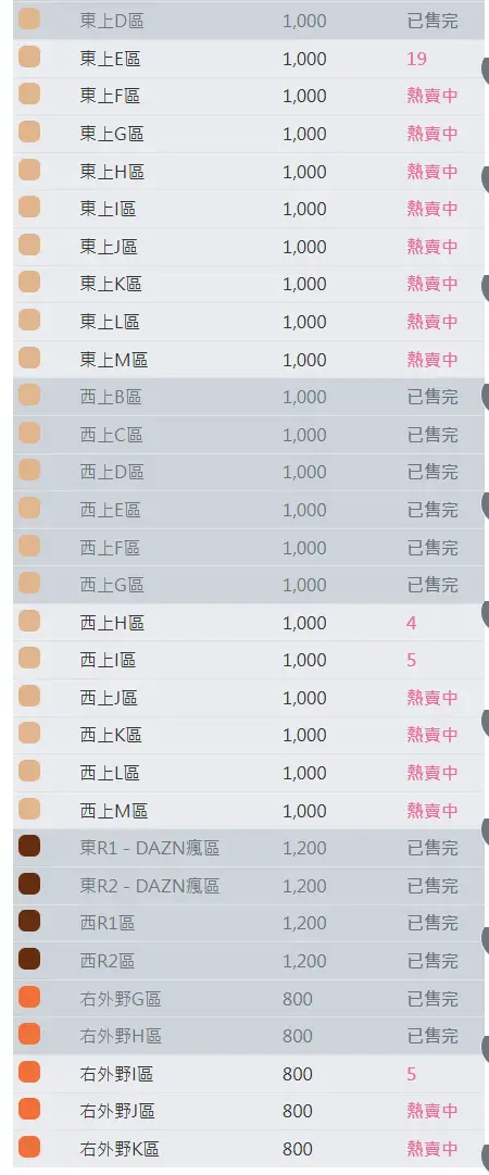 上層中間的位置,後幾排可看兩側啦啦隊舞台,但是就比較遠一點