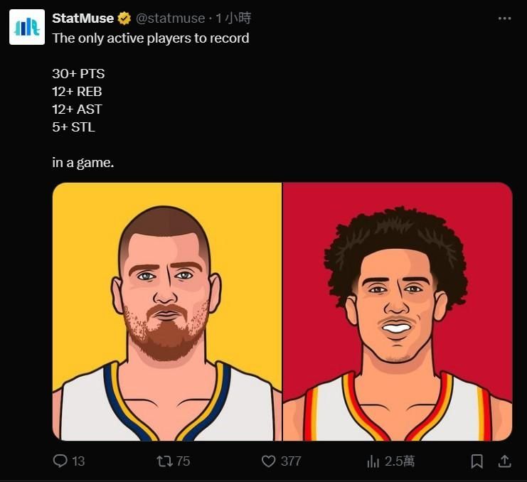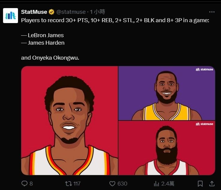 NBA史上唯一一個單場繳出這種數據的球員,這有點湊但也代表這場真的打得很好