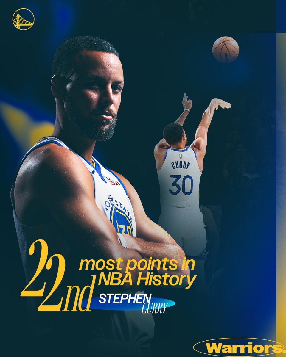 Stephen Curry passes Vince Carter for 22nd most points in NBA history.