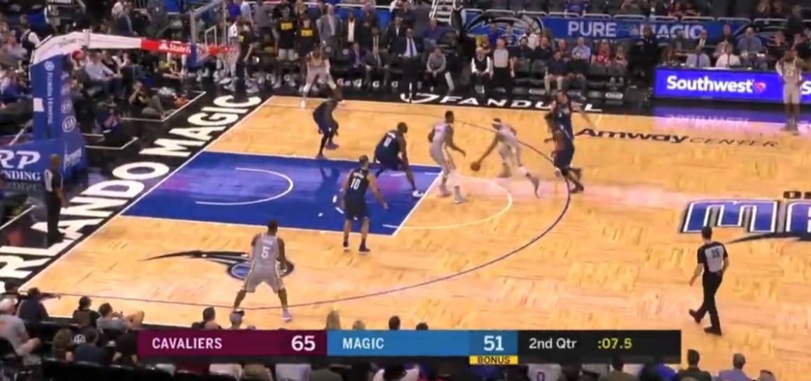 就是Isaiah Thomas持球切入的時候姆斯中場插腰