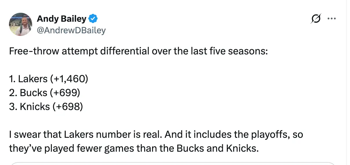 [情報] 近5季累積罰球次數差: 1.湖人>第2+第3