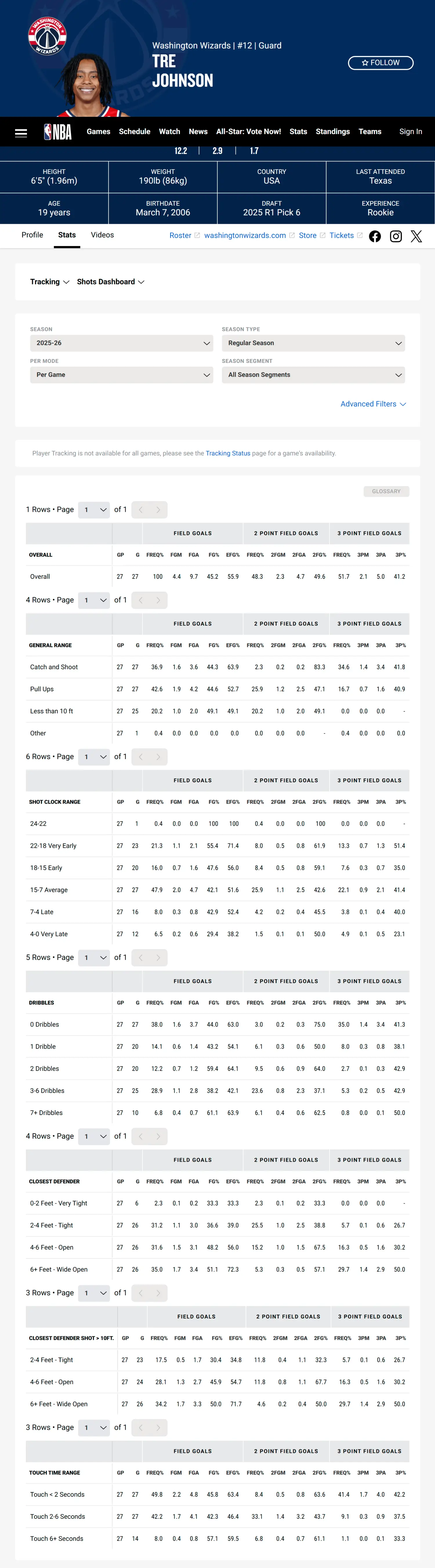 巫師的 2025年 No.6 新秀 Tre Johnson 可能是近幾年射程最遠的新人射手。