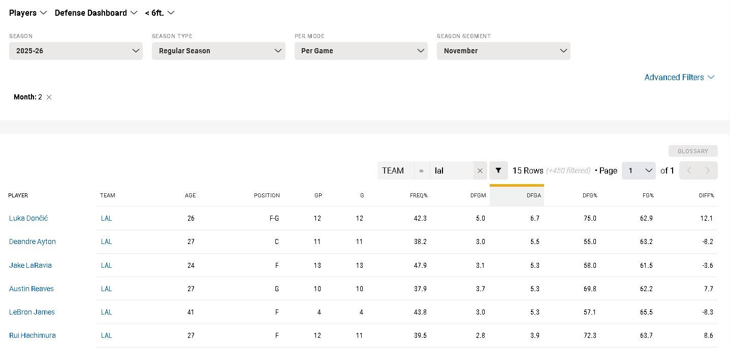 11月Doncic出賽12場,不太會被LeBron的4場給影響到太多,但已經飆高到6.7。