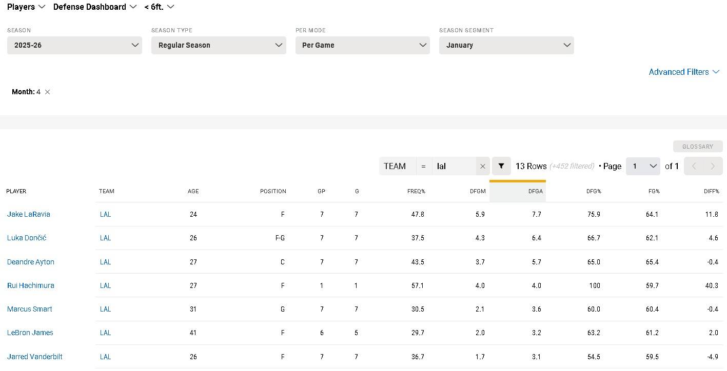 隨著他上場時間越來越多,被挑戰籃下6呎出手也增加。(今年還略降)