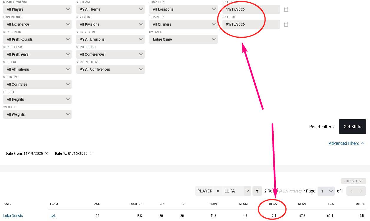 Luka Doncic 場均6.5次 對手命中率提高 5.5 ←次數排序第十名