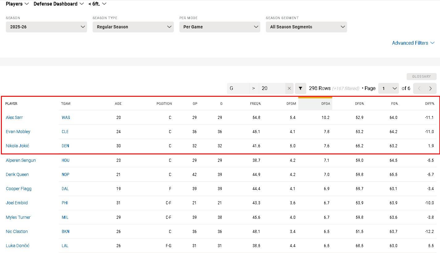 Nikola Jokic 場均7.6次 對手命中率提高 1.9