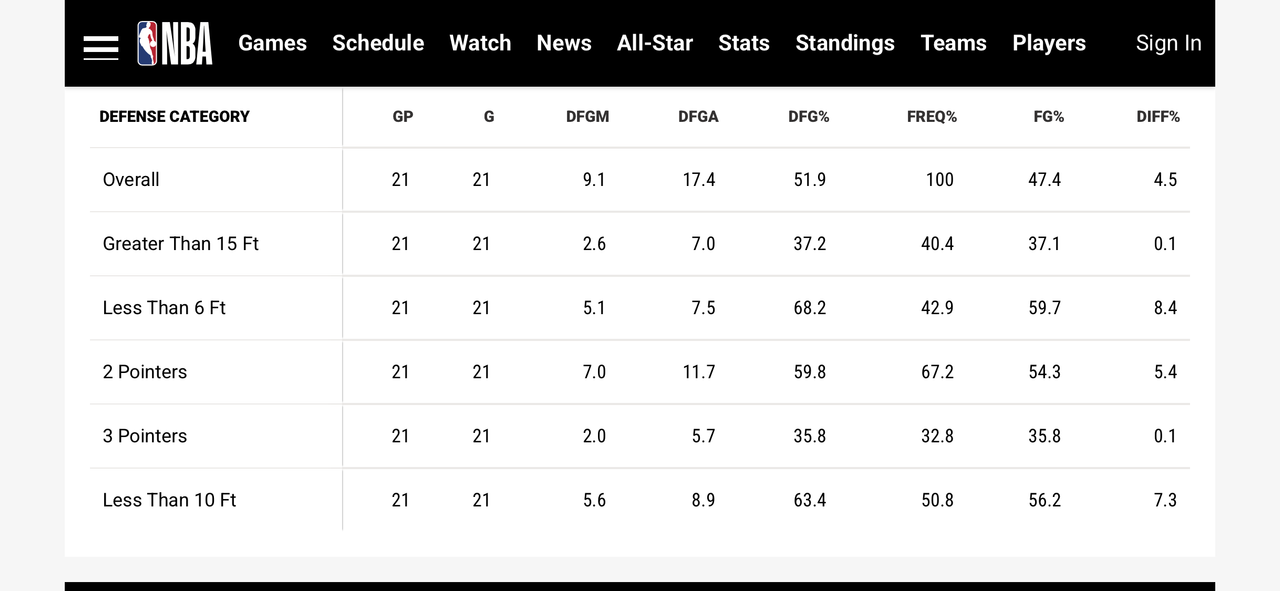 這個是NBA「什麼資料都有」的防守統計資料。