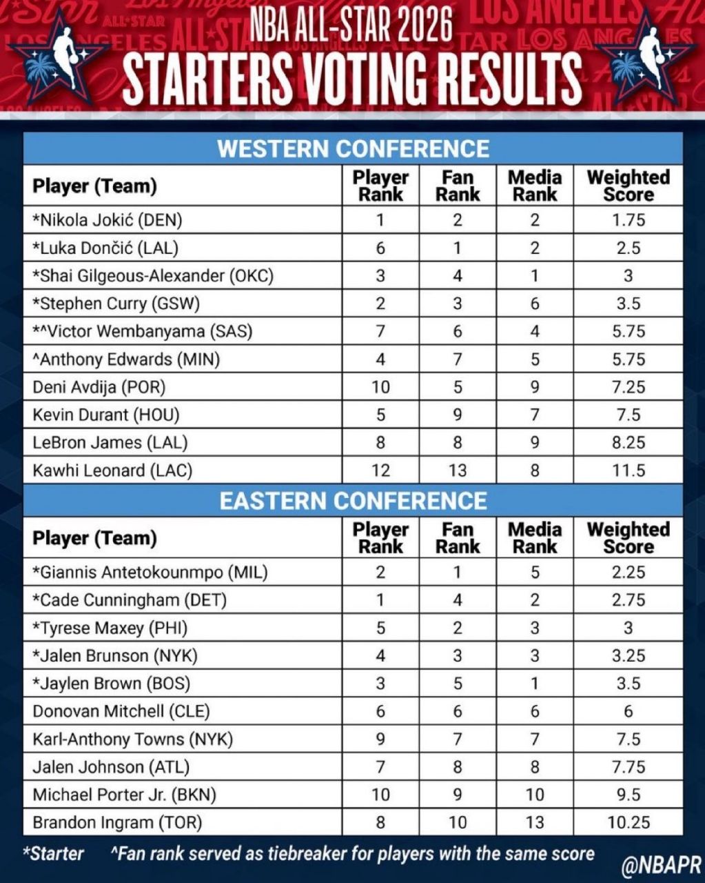 2026 West All-Star starters: