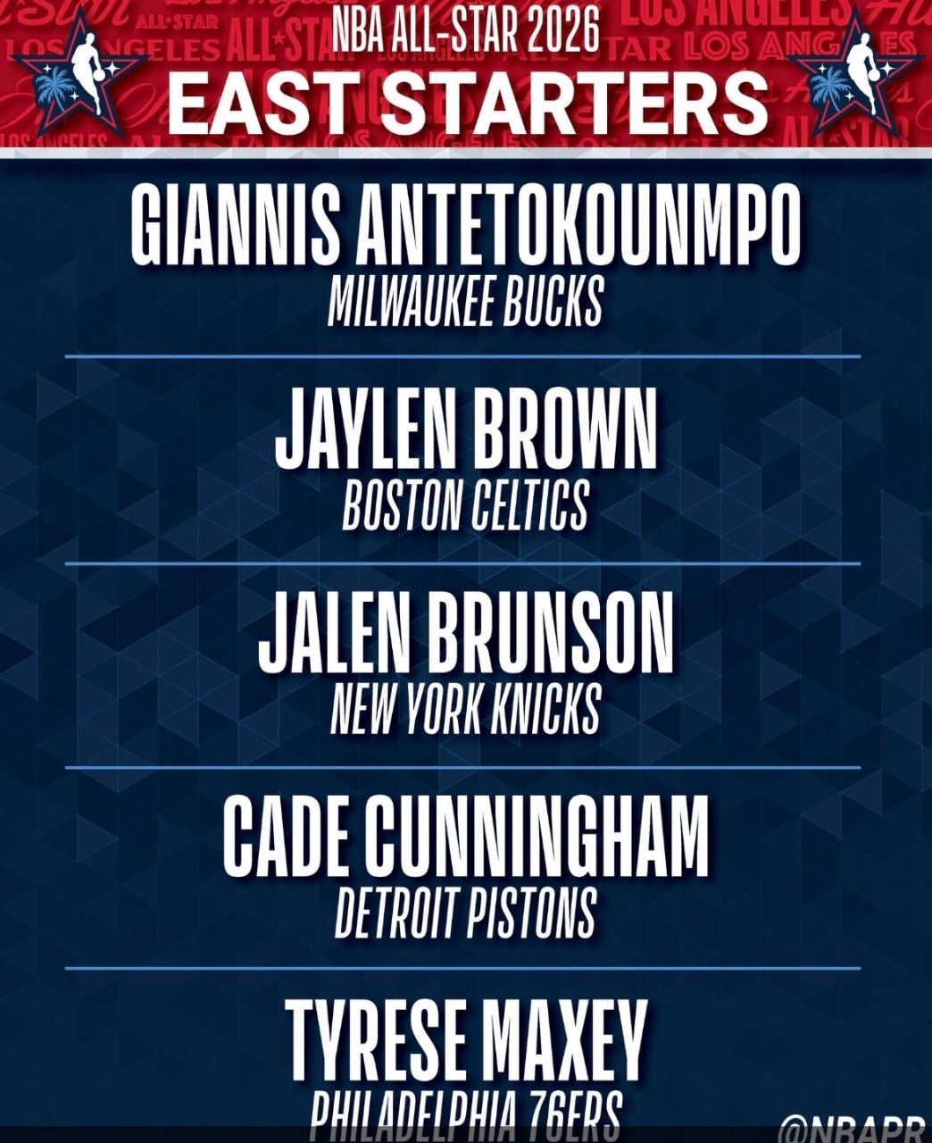 2026 East NBA All-Star starters: