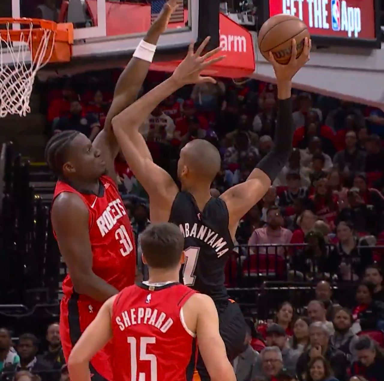 (Victor Wembanyama)比賽中仍演出單臂爆扣技驚四座,他切入對抗火箭中鋒卡佩拉(Cli