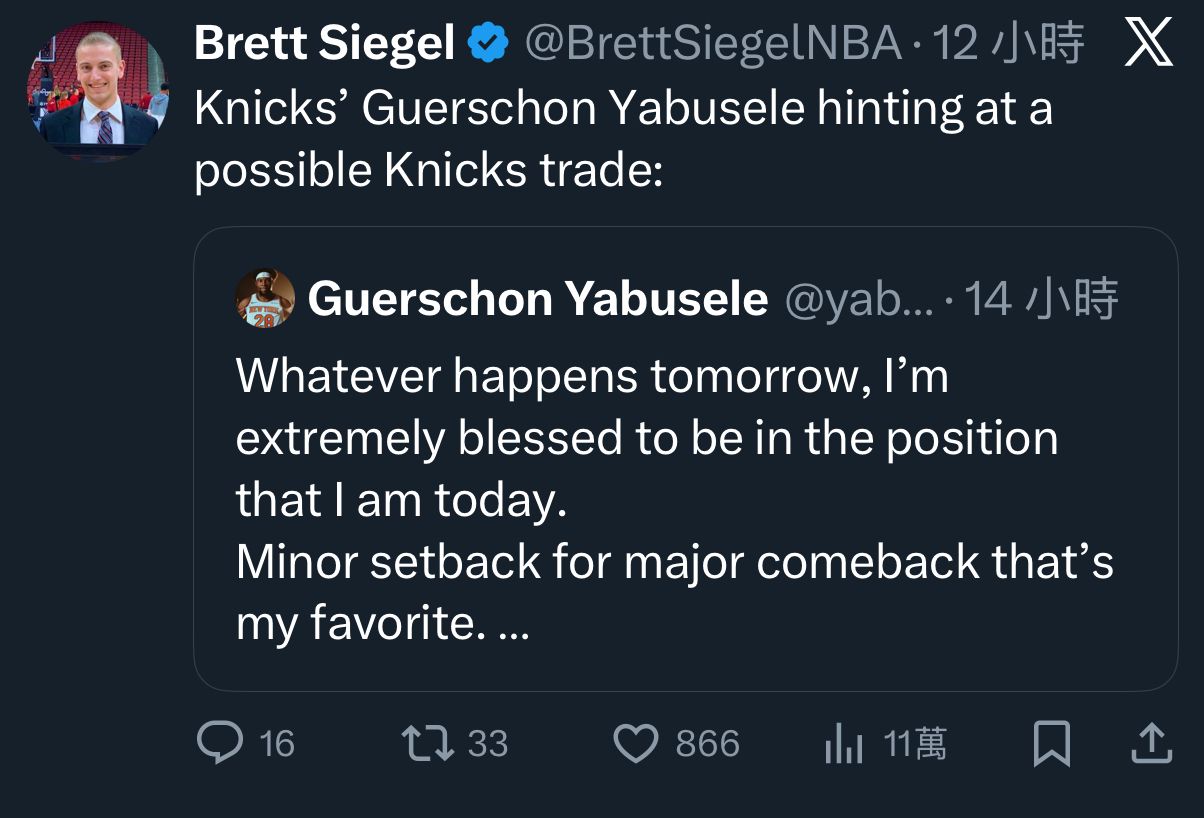 消息來源:尼克與鵜鶘 一直在討論一筆交易,內容包含前鋒 Guerschon Yabusele。