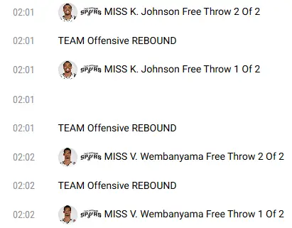 V. Wembanyama C 31:21 6-16 2-10 2-6 -12 1 15 16 0 3 0 3 4 0 16 19