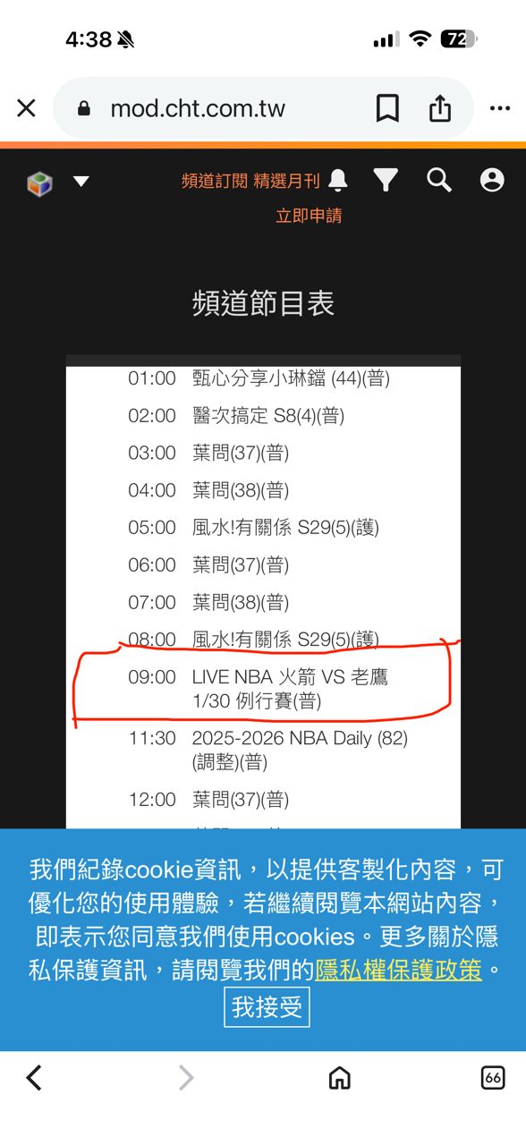 播本來中午看是沒有的,所以就是MOD的愛爾達體育一台跟緯來精彩都有NBA轉播,然後1/