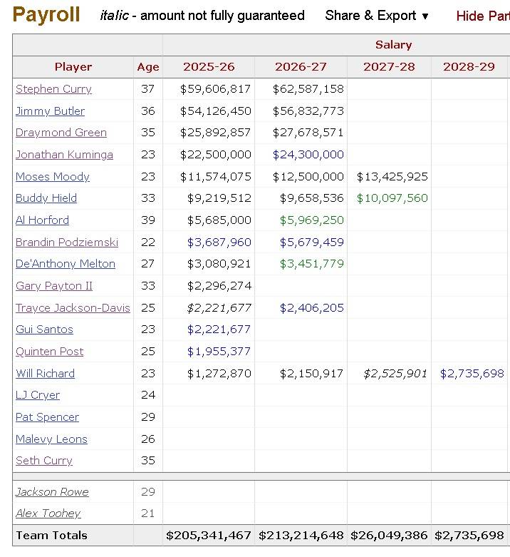 勇士的事,追追熊應該比較強,班門弄斧一下,從薪資的角度來看:
