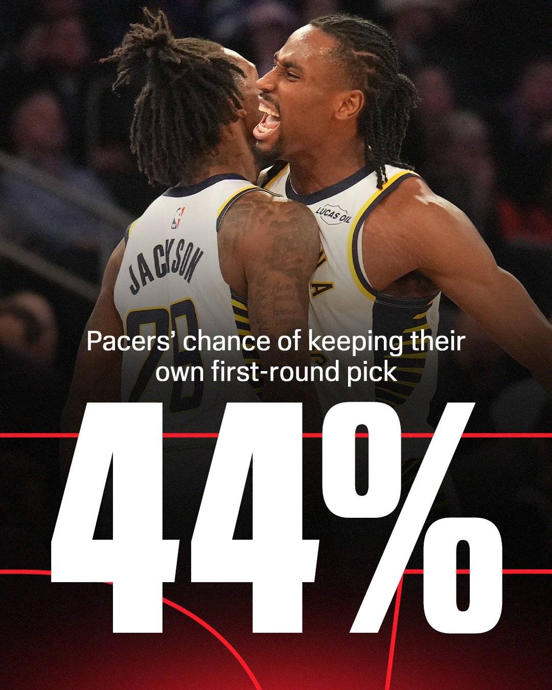 在溜馬昨晚下剋上打贏尼克之後 他們目前留下首輪的機率掉到了44%