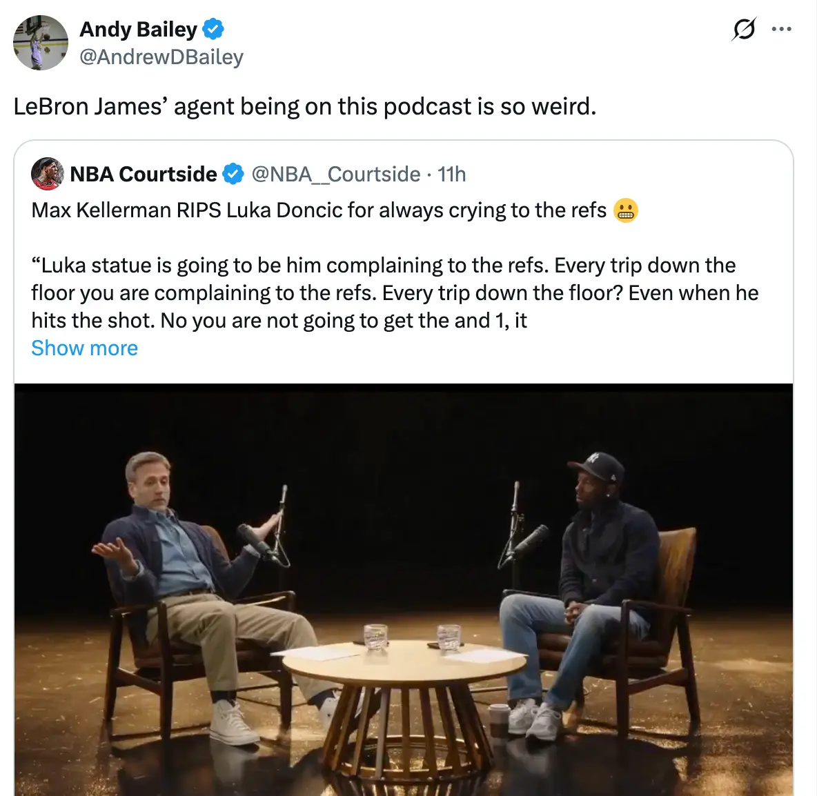 「LeBron James 的經紀人出現在這個Podcast上感覺超怪的。」