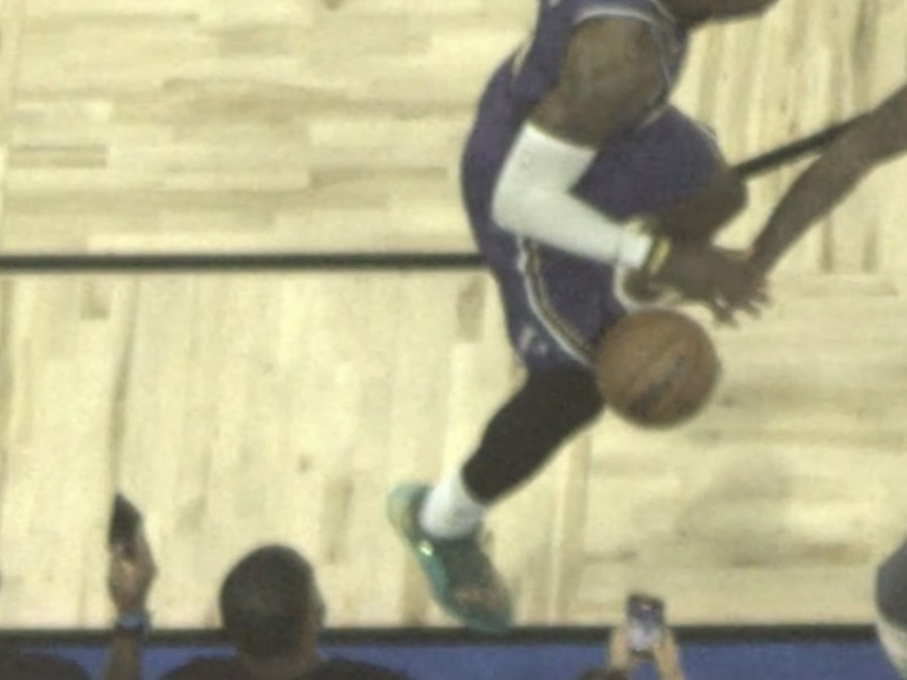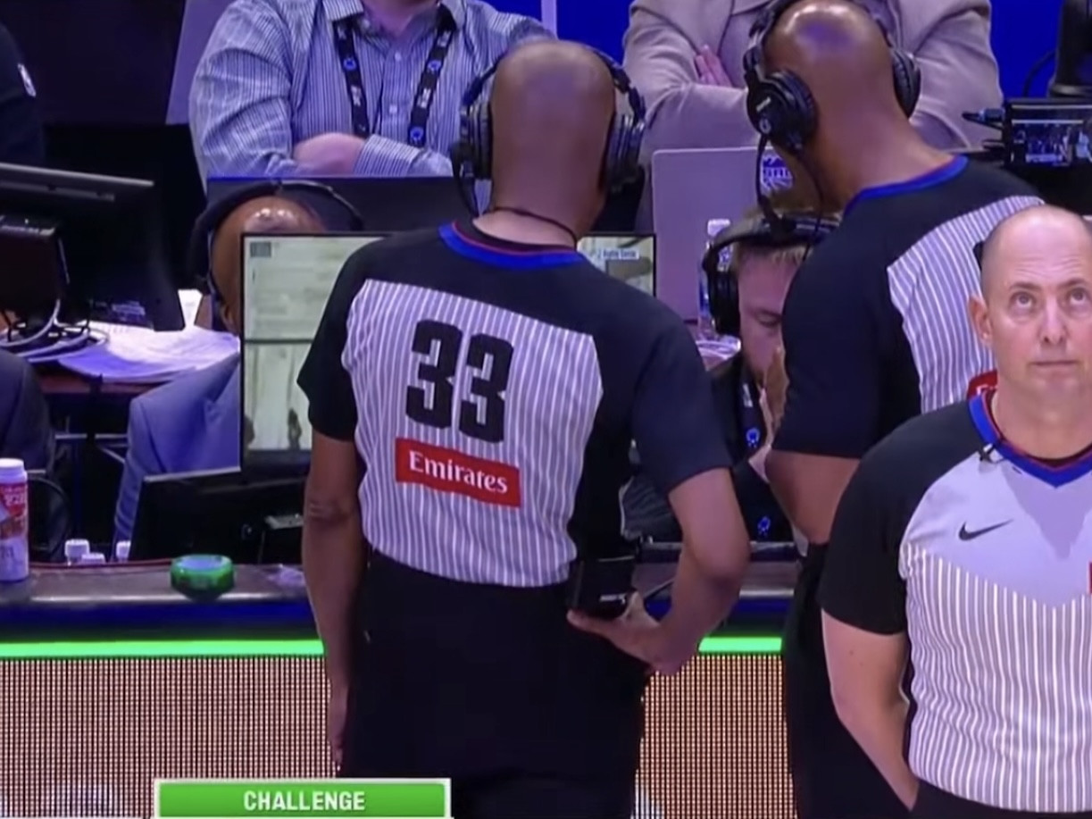 LeBron James on the final possession and the officials missing him getting