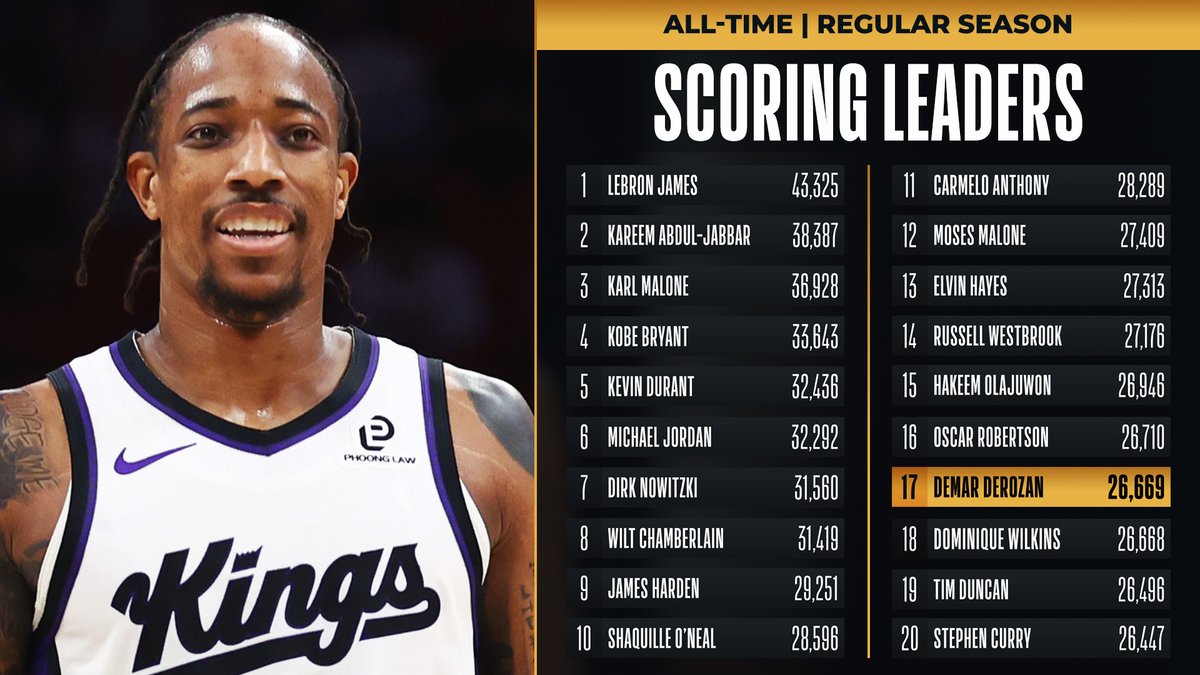 Congrats to @DeMar_DeRozan of the @SacramentoKings for moving up to 17th on
