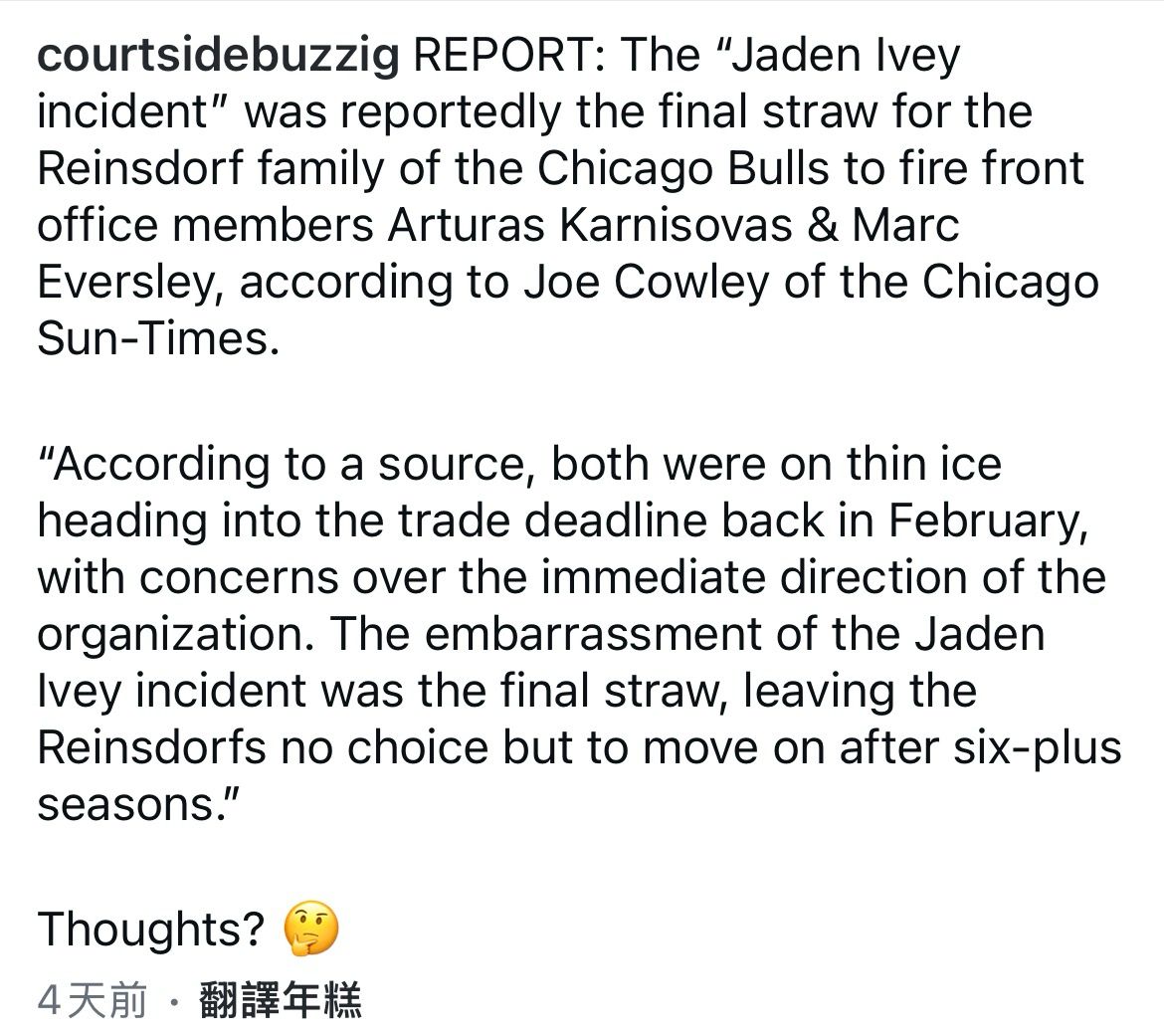 ▶心得:果然前公牛雙人組下台,跟Jaden Ivey場下風波有不小的關係!不過坦白說: