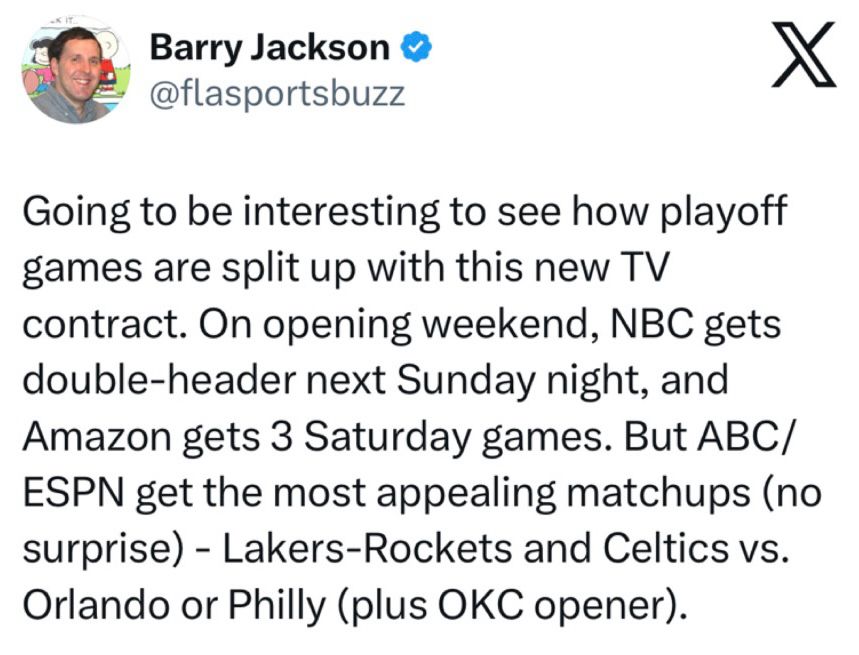 蠻好奇接下來季後賽,美國轉播單位的安排