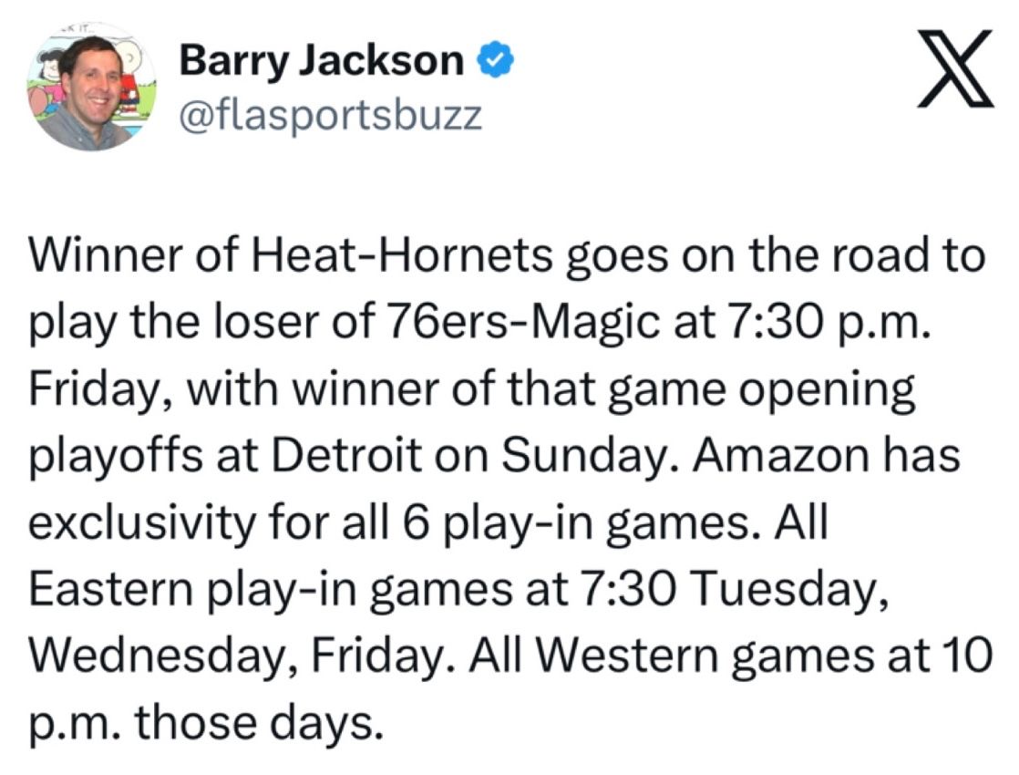 Now official: Heat at Hornets play-in game will be Tuesday, not Wednesday,