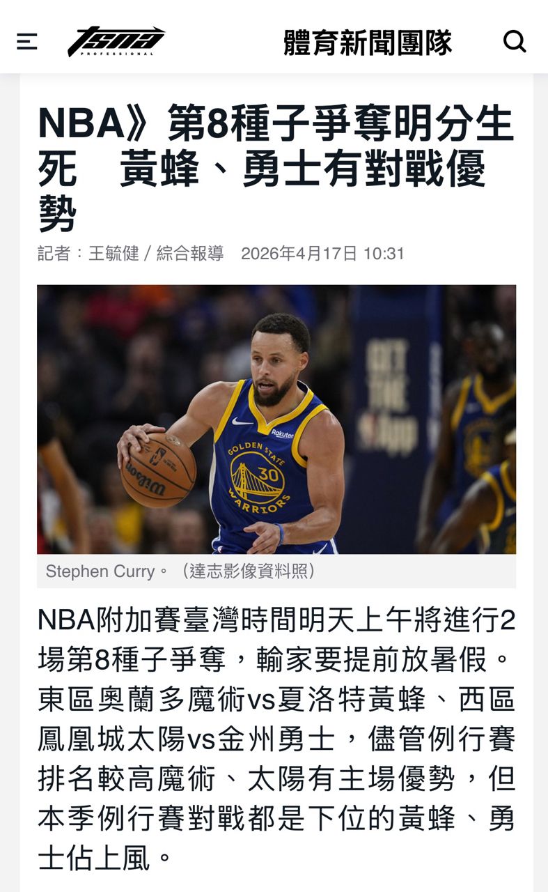 [新聞] 第8種子爭奪明分生死 黃蜂、勇士有對戰優勢