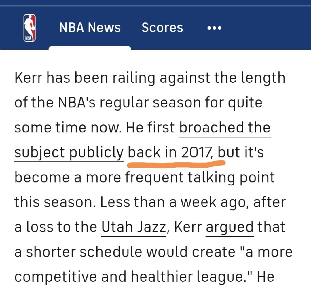 Re: [外絮] Kerr說縮短賽季 老巴:拿四冠的時候怎不說?