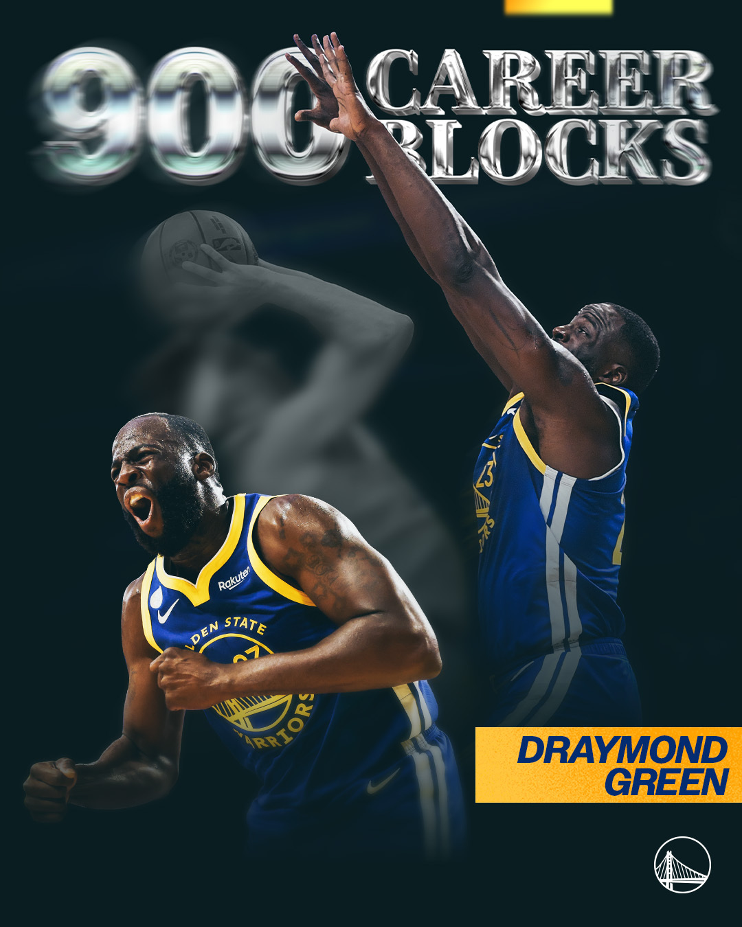 Draymond Green完成生涯第900次阻攻,成為勇士隊史第二位達成此成就的球員!