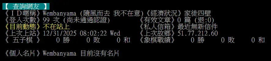 ※ 文章網址: https://www.ptt.cc/bbs/NBAEasyChat/M.1767762218.A.1A8.html