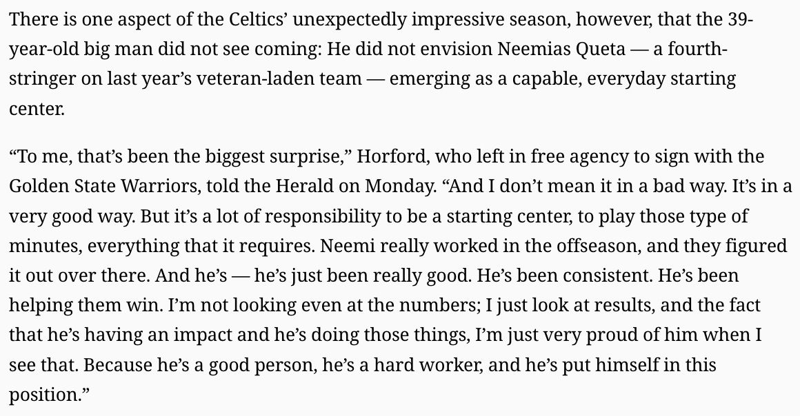 Brown's, Horford said, he "absolutely" expected. Queta's, he did not.