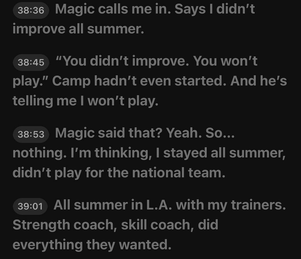 Magic把我叫進去,說我整個夏天都沒有進步。