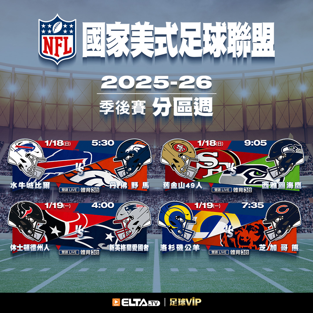 [NFL!] 2025-26 季後賽分區賽 愛爾達轉播預告