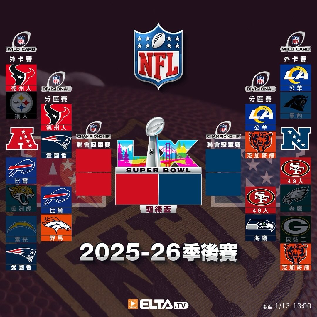 【NFL季後賽版圖】1月13號