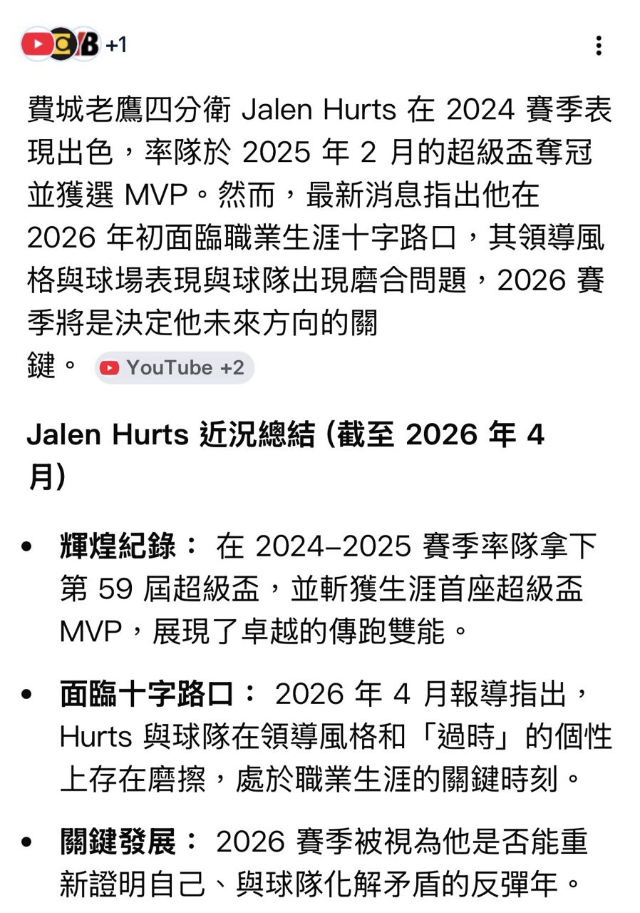 3.老鷹:Jalen Hurts與隊友貌合神離?ESPN專題報導爆有人稱他「不受教」