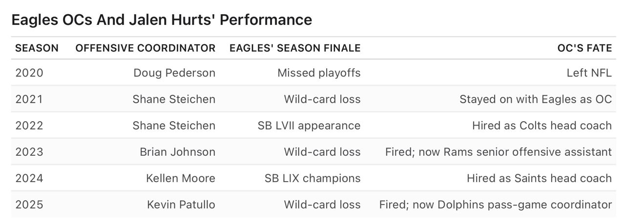 尤其費城在Hurts時期又更換了第六任進攻總監(OC,雖然Steichen與Moore是因為打進