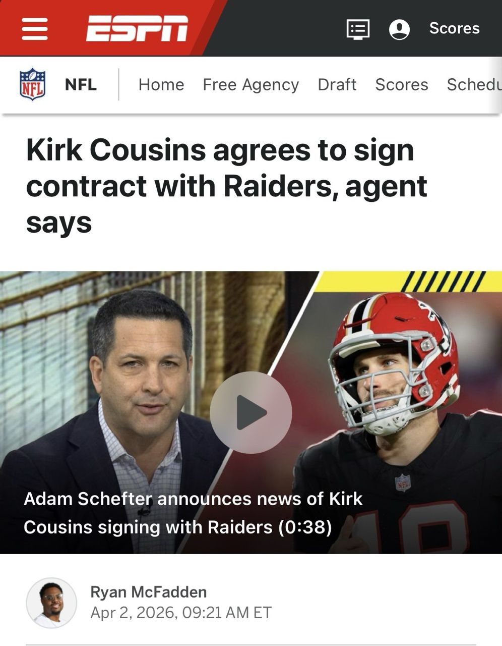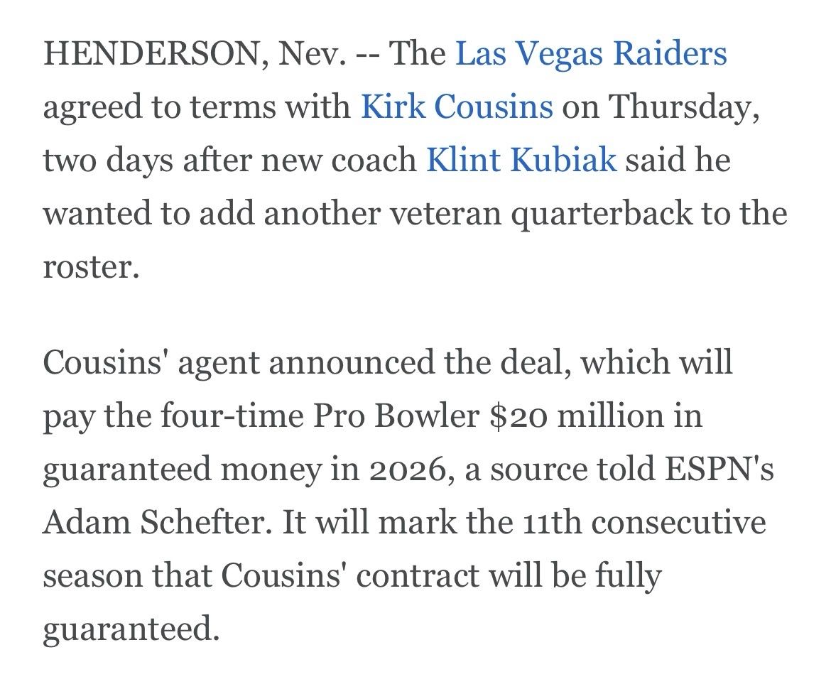 1.突擊者:簽下Kirk Cousins,有望成為準狀元導師