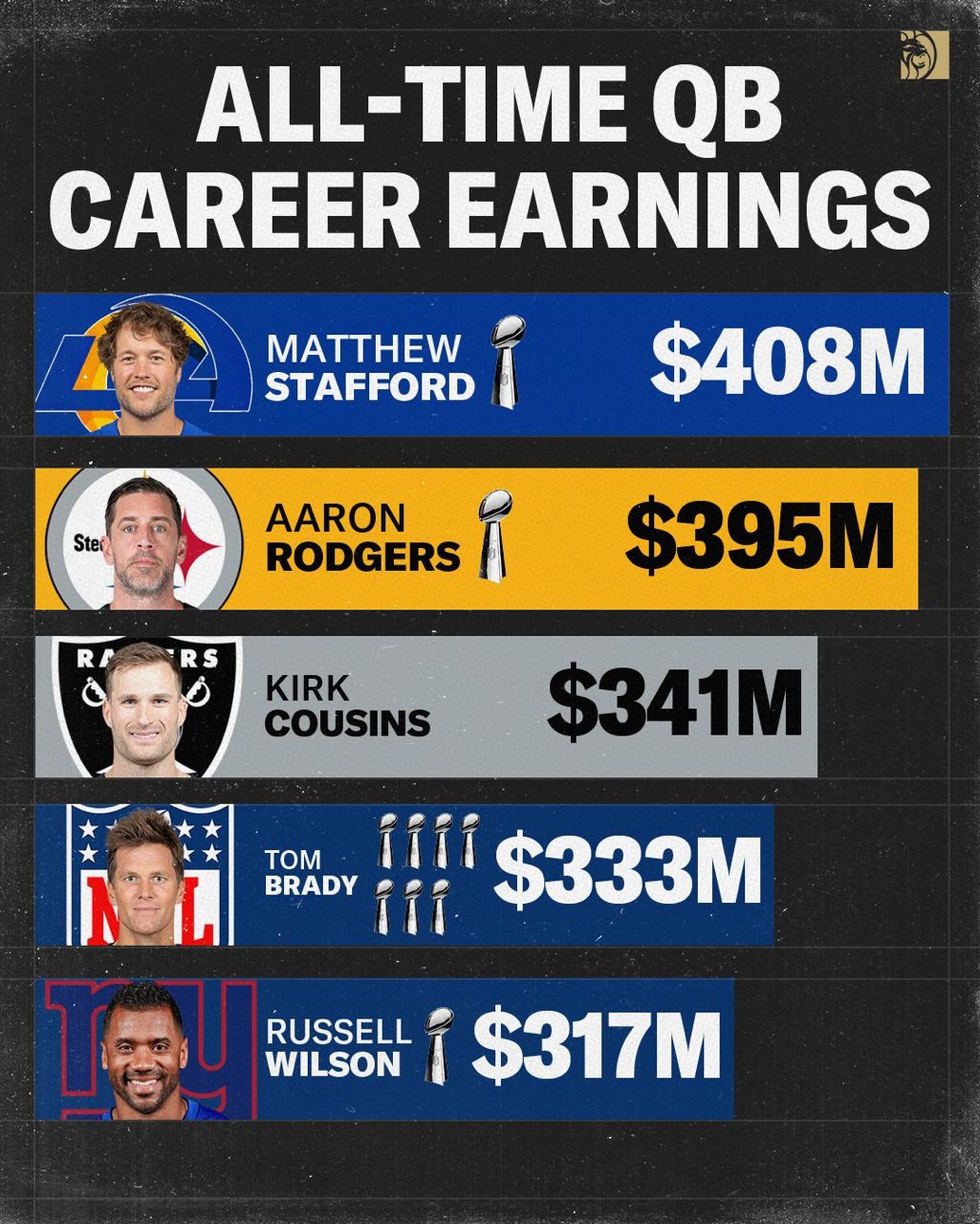 順帶一提:表哥在這筆簽約後,他的職業生涯總收入已經超越NFL的「山羊」暨Fox現任